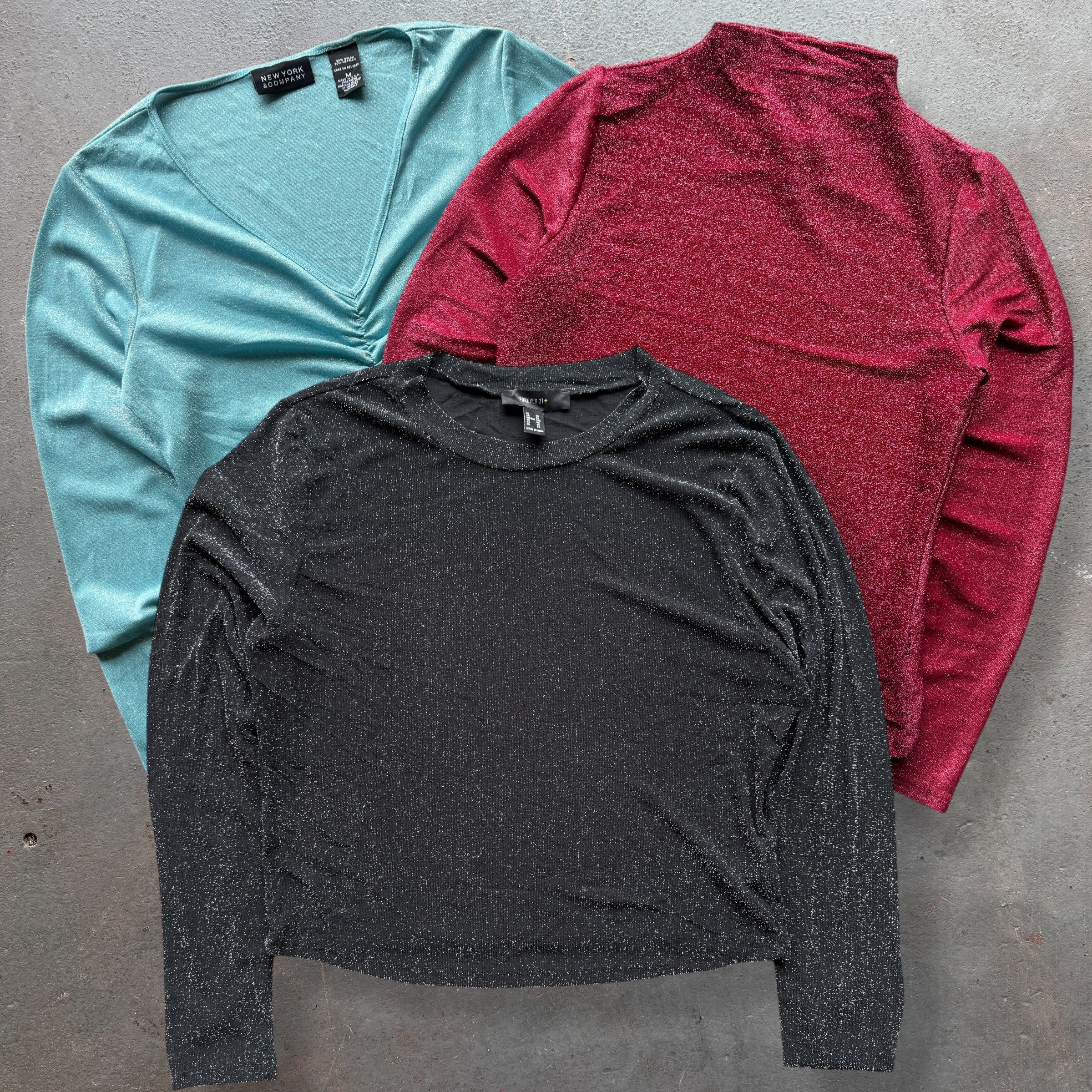 50 x LADIES LONG SLEEVE GLITTER & SEQUIN TOPS- SACKS