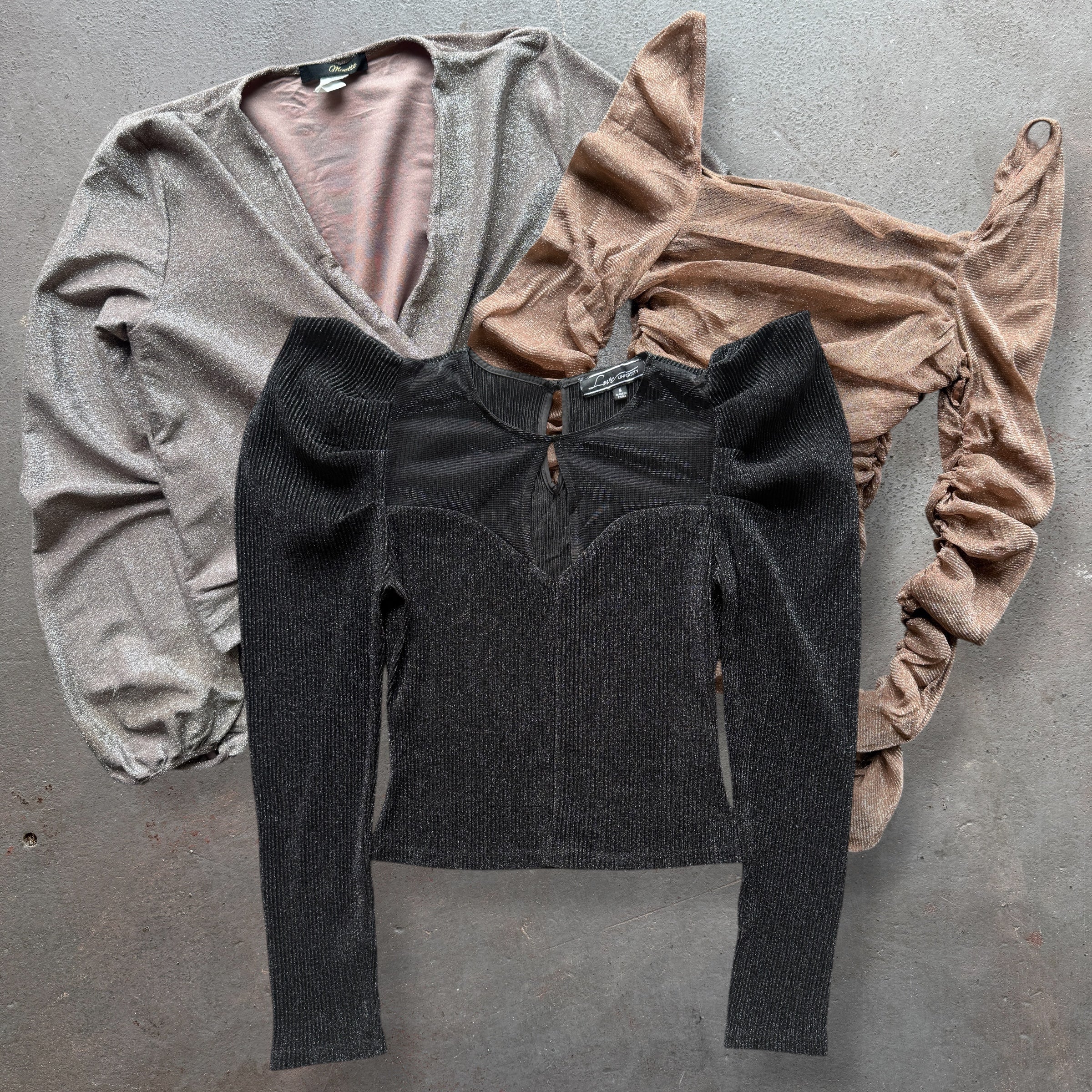 A full mix of unbranded ladies Long Sleeved Glitter & Sequin Tops, a perfect wardrobe staple and a guaranteed top seller and money maker!